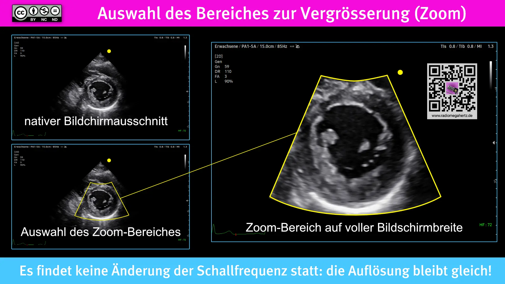 Ich trenne den nativen Bildschirmausschnitt sprachlich von den anderen Funktionen. Die ROI kann somit nie größer als die FOV sein. Die FOV ist primär charakteristisch für jeden Sondentyp und kann darüber hinaus modifiziert werden. 😉